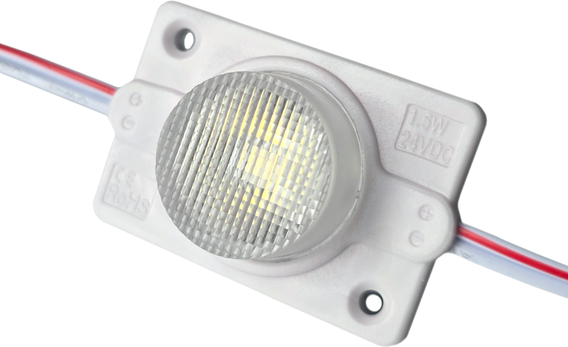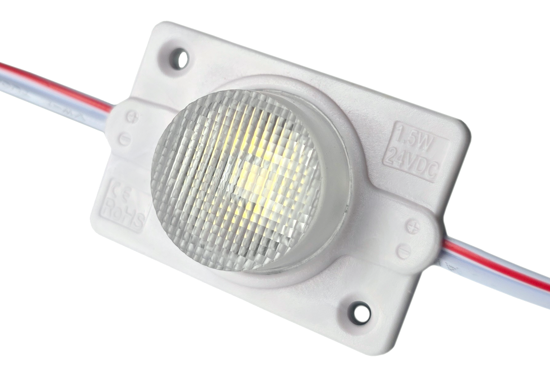 Sehr homogene Ausleuchtung bei seitlicher Einstrahlung bis zu einer Höhe von 130cm (90mm Bautiefe) ca. 12 Module pro Laufmeter. 20 Stück vorverkabelt, das ist auch das Limit pro Zuleitung. Die Module sind in Leuchtkästen sowohl im Innen als auch im Aussenbereich einsetzbar.