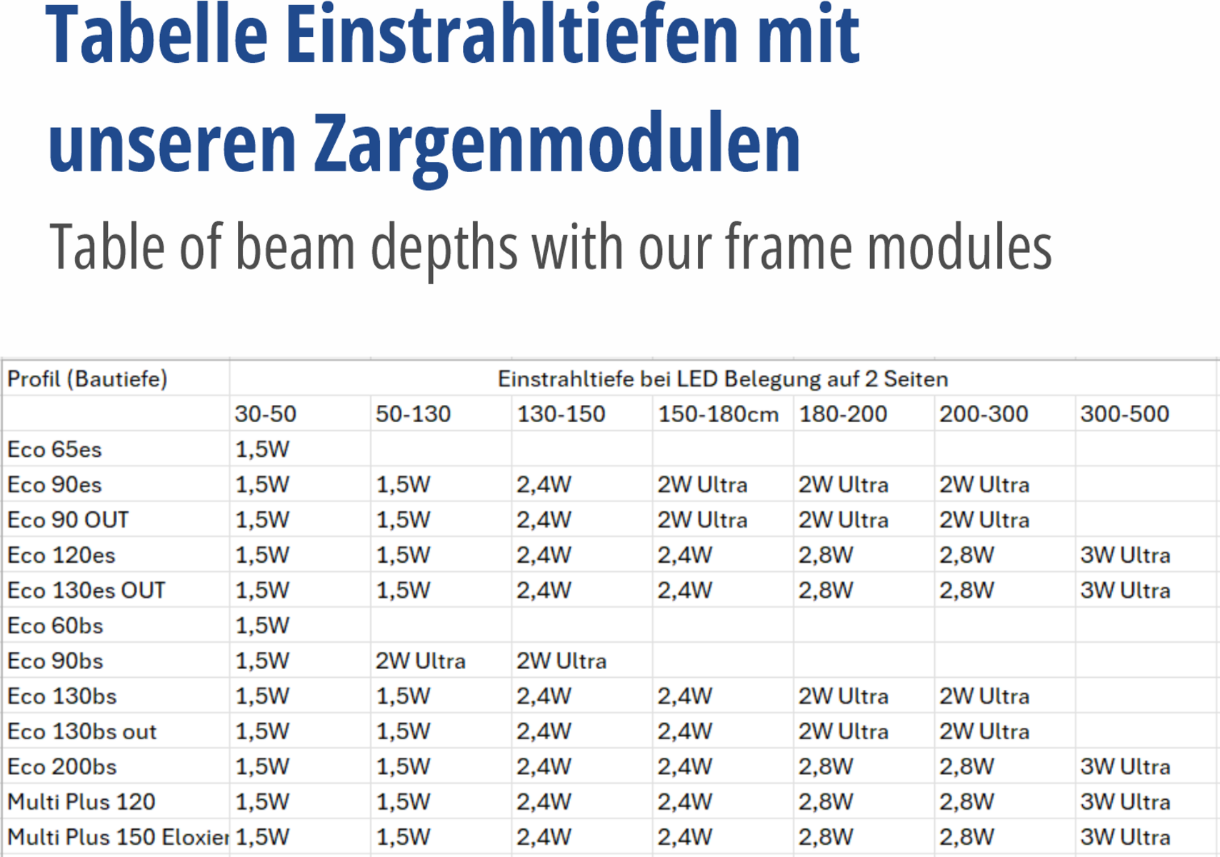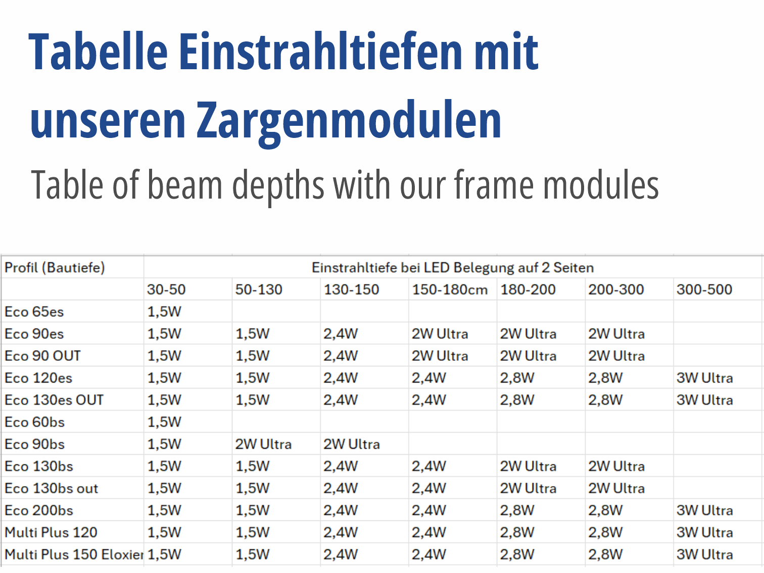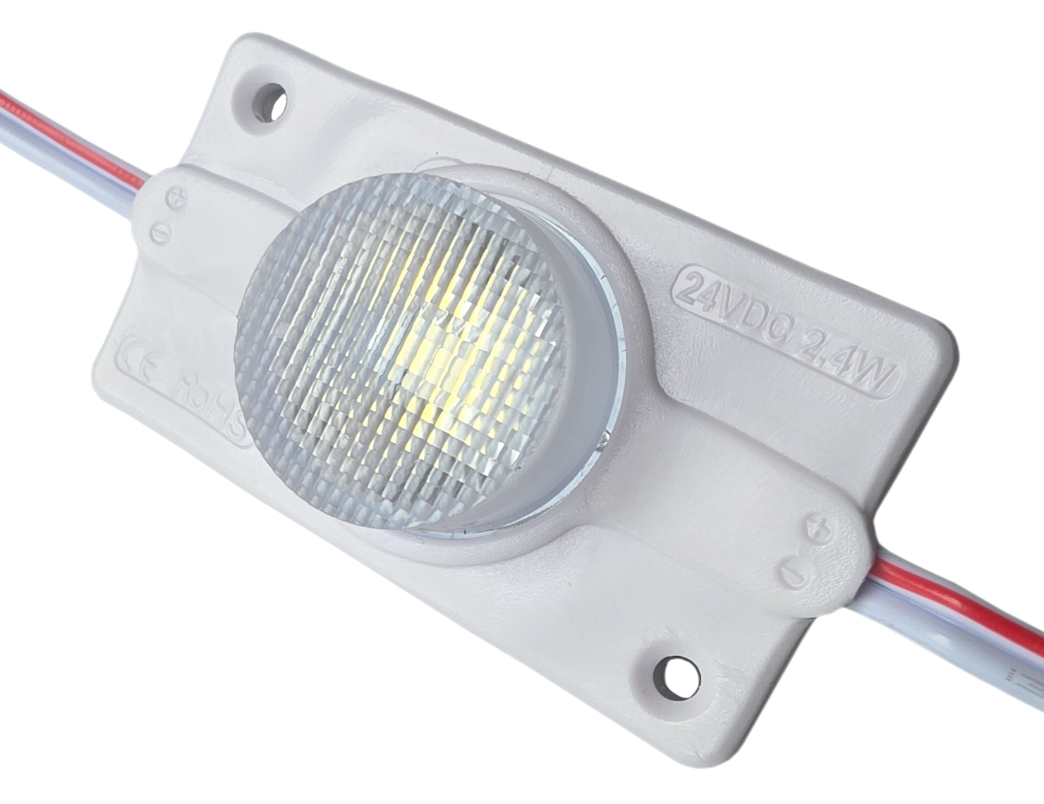 Das 24V LED-Zargenmodul bietet eine Leistung von 2,4 W je Linse und eine Lichtleistung von 200 Lumen pro Modul in der Farbtemperatur 6500K. Es eignet sich ideal für den Einsatz in einseitigen Profilen ab Eco90es sowie in doppelseitigen Profilen ab Eco130bs, jeweils bei einer Einstrahltiefe von 130–150 cm.Die Module sind nach jedem Segment teilbar, was maximale Flexibilität bei der Montage ermöglicht. Eine direkte Dimmung per PWM ist problemlos möglich und erlaubt eine einfache Helligkeitsregelung über gängige Controller. Für eine schnelle Vorinstallation ist die Rückseite mit doppelseitigem Klebeband ausgestattet. Zusätzlich ist das Modul kompatibel mit LED-Rail-Systemen, wodurch die Montage noch effizienter und sauberer erfolgt.Empfohlen werden etwa 10 Module pro Meter, um eine gleichmäßige und professionelle Ausleuchtung der Leuchtkästen zu gewährleisten. Das LED-Zargenmodul überzeugt durch seine hohe Effizienz, einfache Handhabung und optimale Lichtverteilung für Anwendungen in der Werbetechnik.