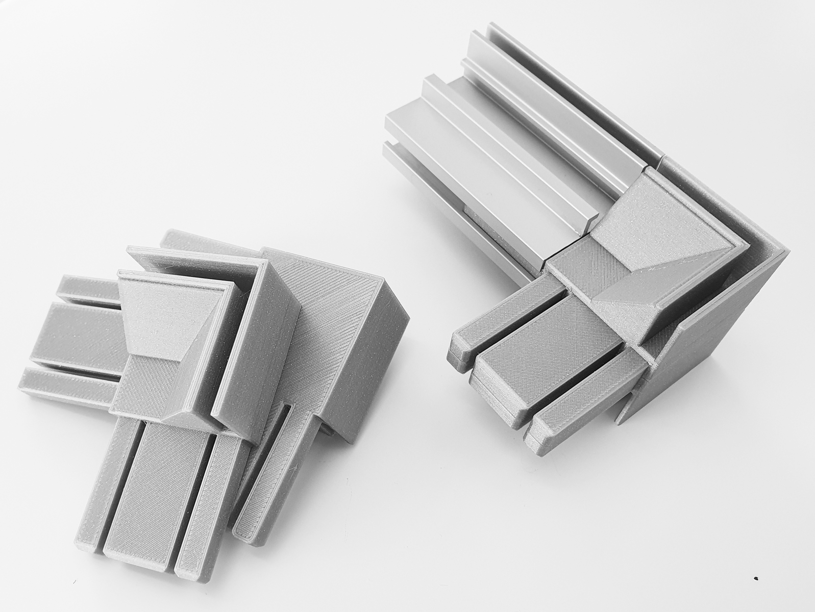 Endlich KEIN Gehrungsschnitt mehr nötig. SMP Eco45 gerade abschneiden und mit diesem Eckverbinder werkzeuglos zusammensetzen. Eingeloggt gratis 3D Druck Daten herunterladen!