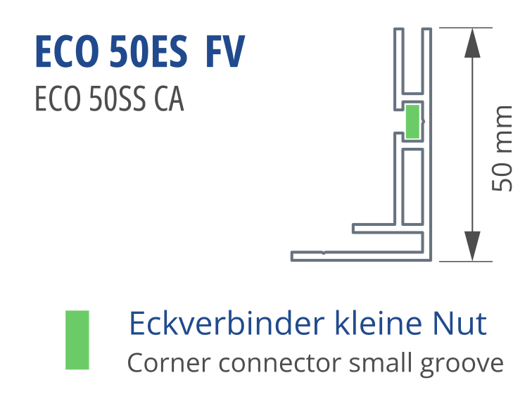 Eckverbinderset für Eco 50es Rahmen. Dieses Set besteht aus 4 Stück Verbindern für kleine Nut