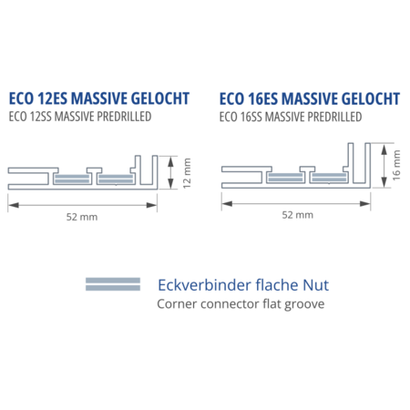 Eckverbinderset für Eco 12es und Eco 16es massive Rahmen. Dieses Set besteht aus je 8 Stück Eckverbinder für flache Nut und Gegenplatte.