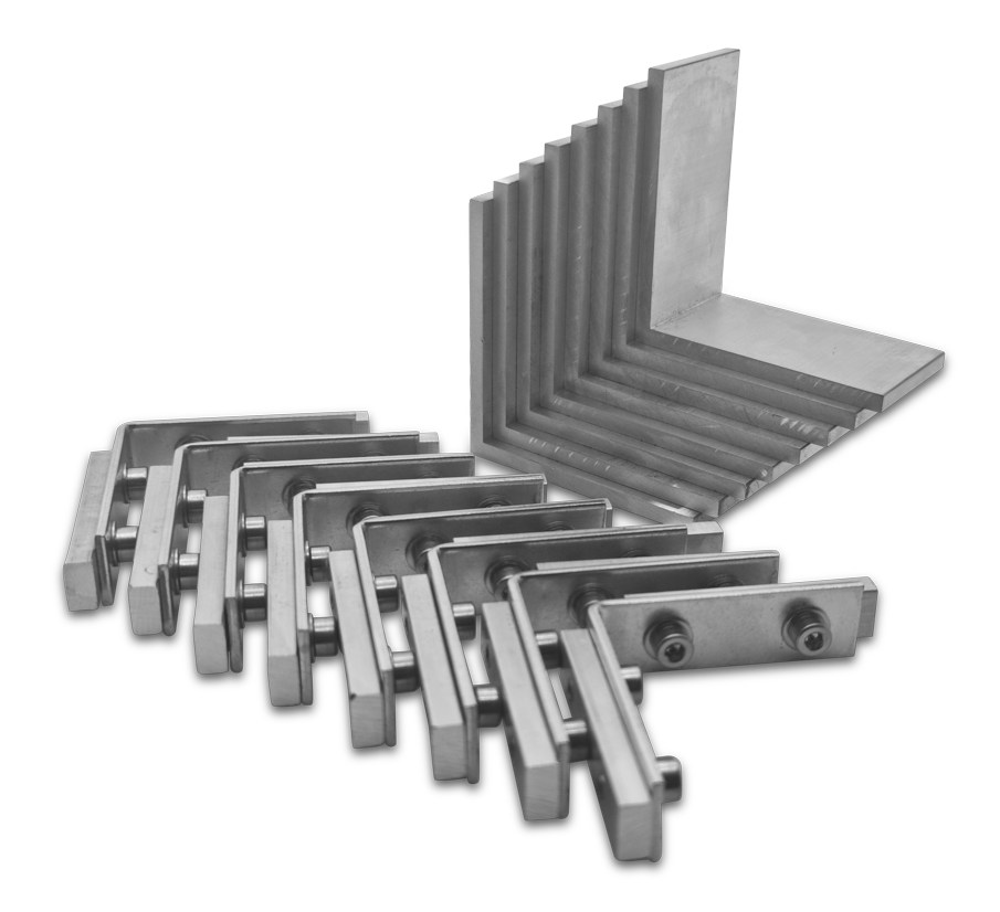 Eckverbinderset für Eco 130bs Rahmen, bestehend aus 8 Stück Eckverbinder kleine Nut und 8 Stück Stabiwinkel 36,8mm