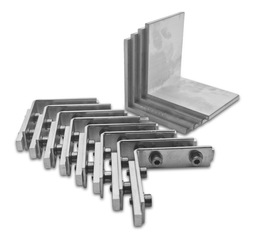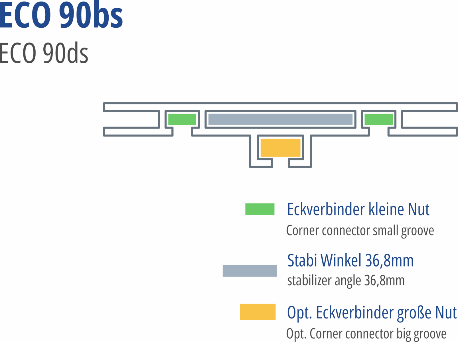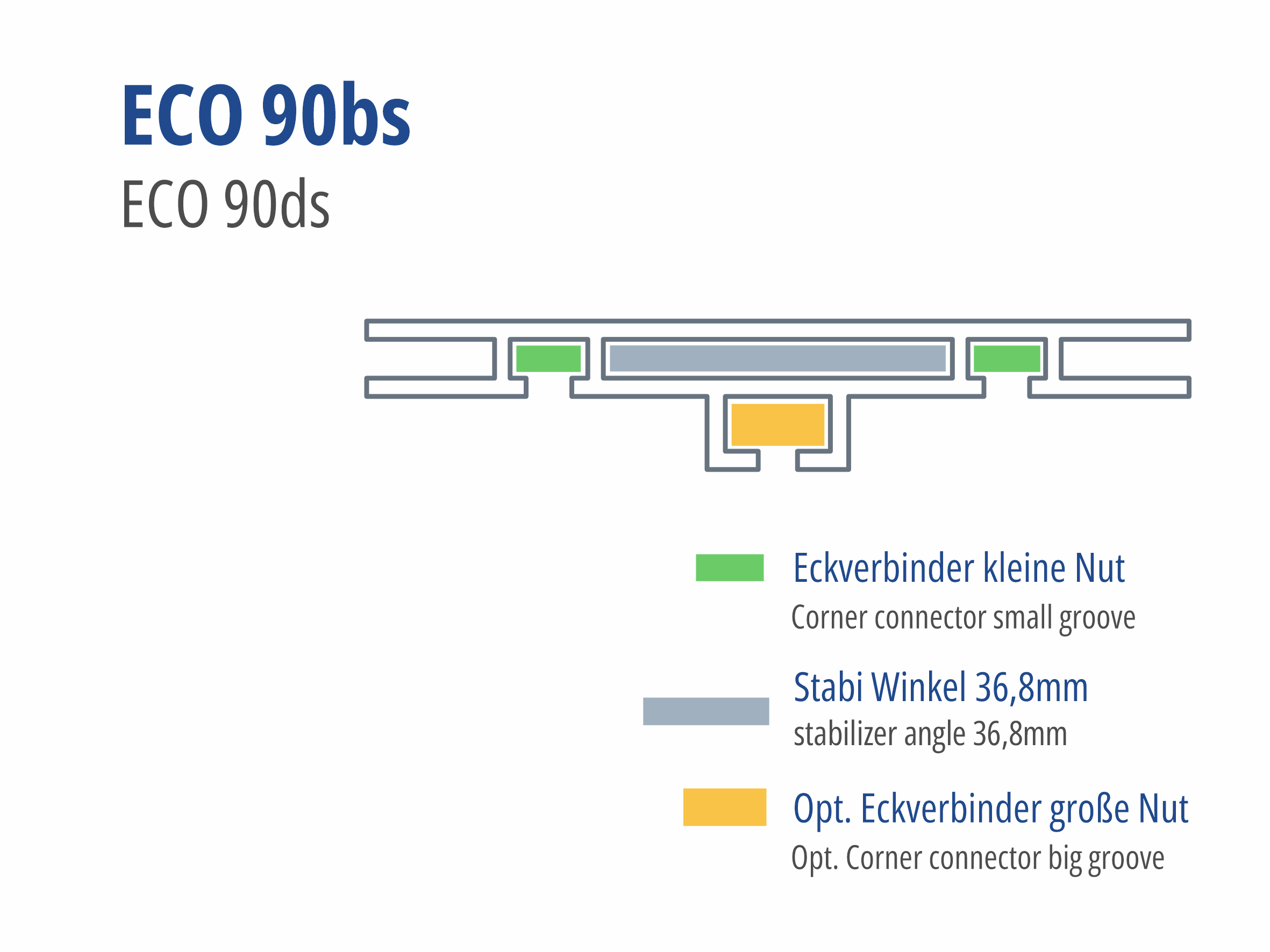 Eckverbinderset für Eco 90bs Rahmen, bestehend aus 8 Stück Eckverbinder kleine Nut und 4 Stück Stabiwinkel für Hohlkammer 36,8mm