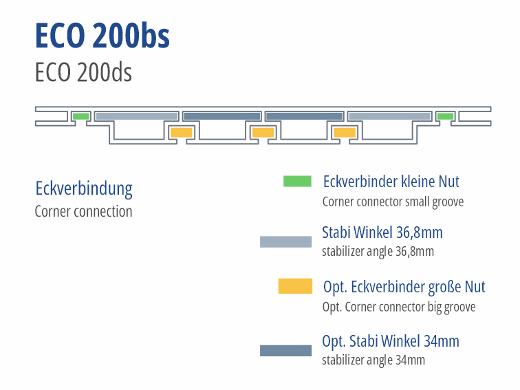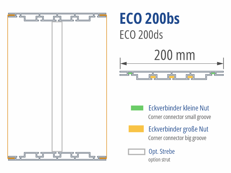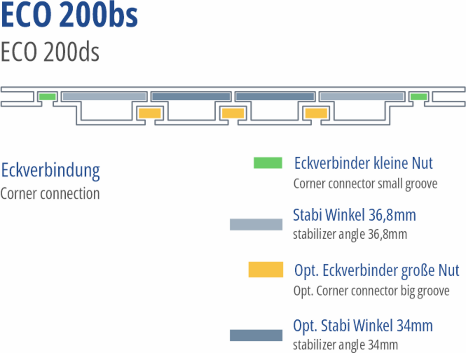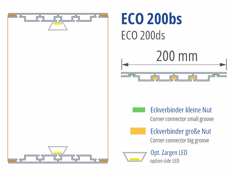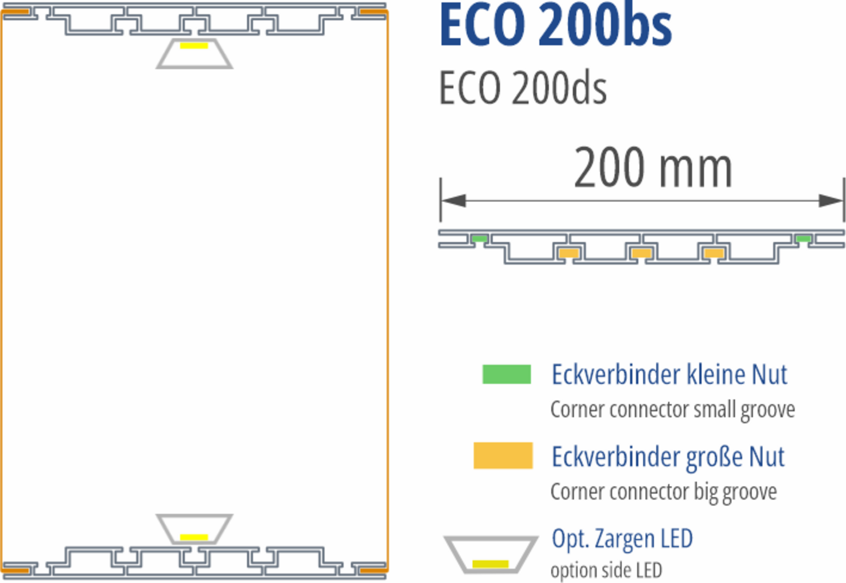 200 mm tiefes Profil zur Herstellung beidseitig leuchtender Anwendungen. Sofern keine der beiden Rahmenseiten ca. 500 cm überschreitet, werden über die Zarge sehr gute Ausleuchtungsergebnisse erzielt. Dank der Verstrebungsaufnahme lassen sich auch großformatige Anwendungen wie Deckenkränze effizient realisieren – besonders vorteilhaft in Kombination mit unserem Innen- und Außeneckprofil. Mit unserem Plexiadapter kann beidseitig anstelle von Spanntuch mit Gummilippe auch Plattenmaterial bis zu 5 mm Stärke eingesetzt werden.