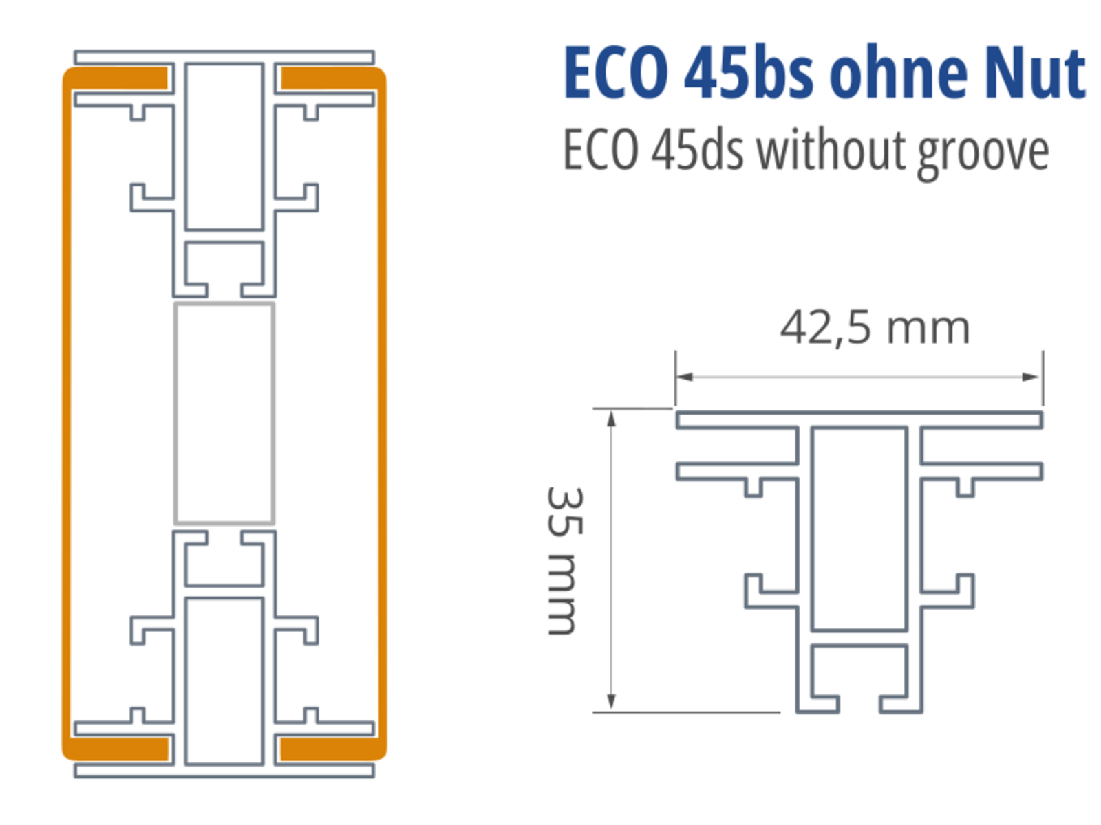 Zur einfacheren Montage von Füßen oder Abhängungen können Sie dieses Profil mit dem Eco 45bs mit Nut kombinieren.