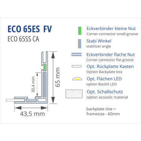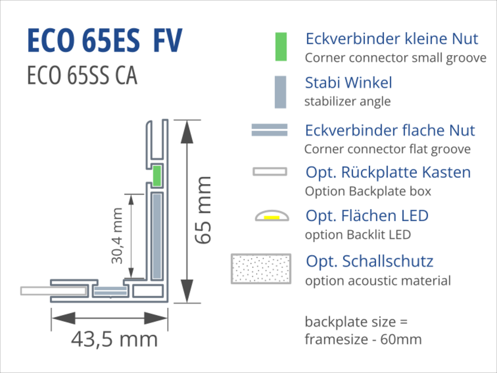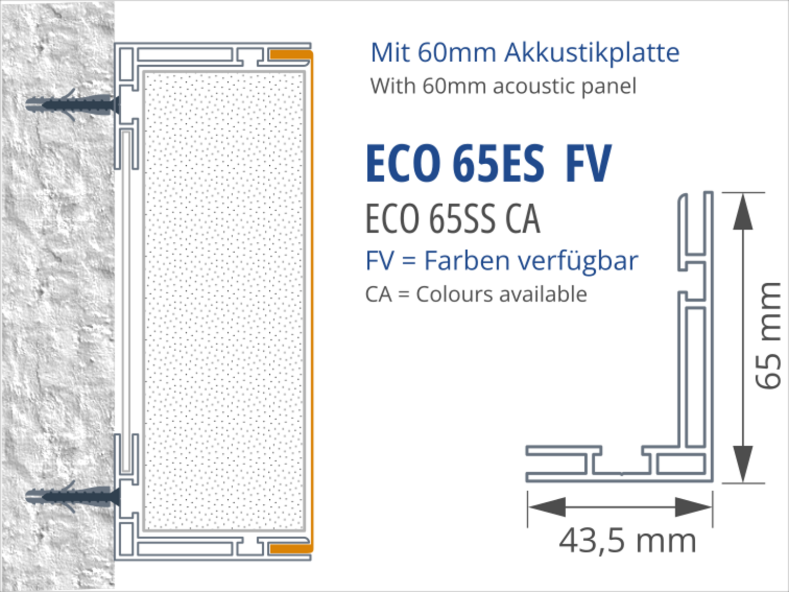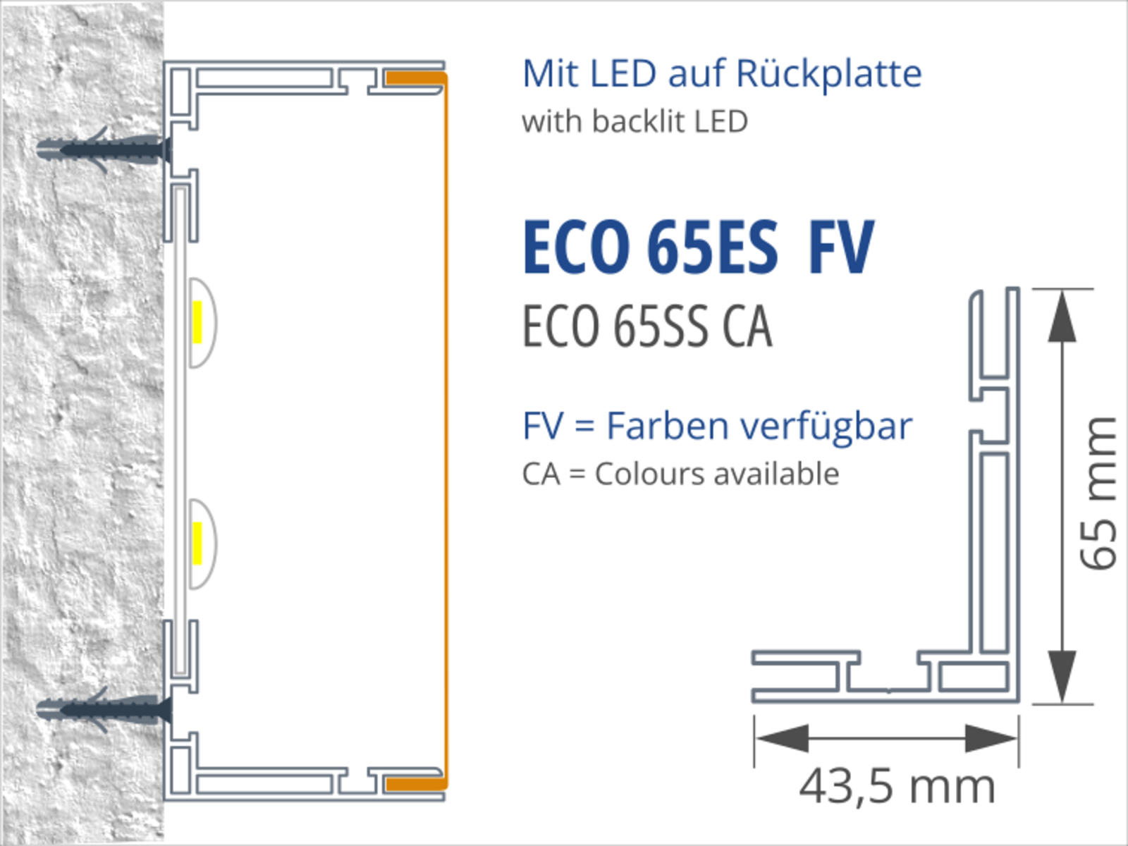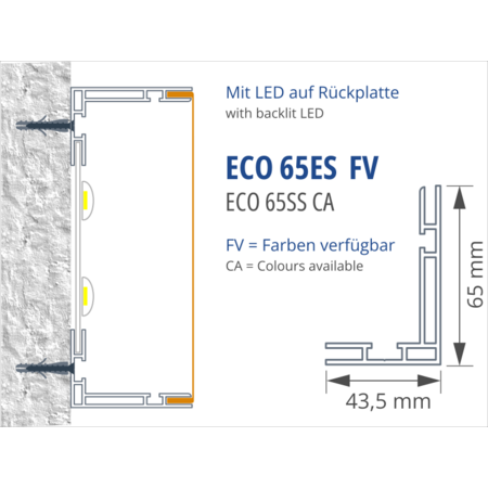 Einseitiges, schlankes Flachkederprofil für direkte Wandmontage oder mit Rückplatte auch für vormontierte Leuchtkästen oder Schallschutzanwendungen.