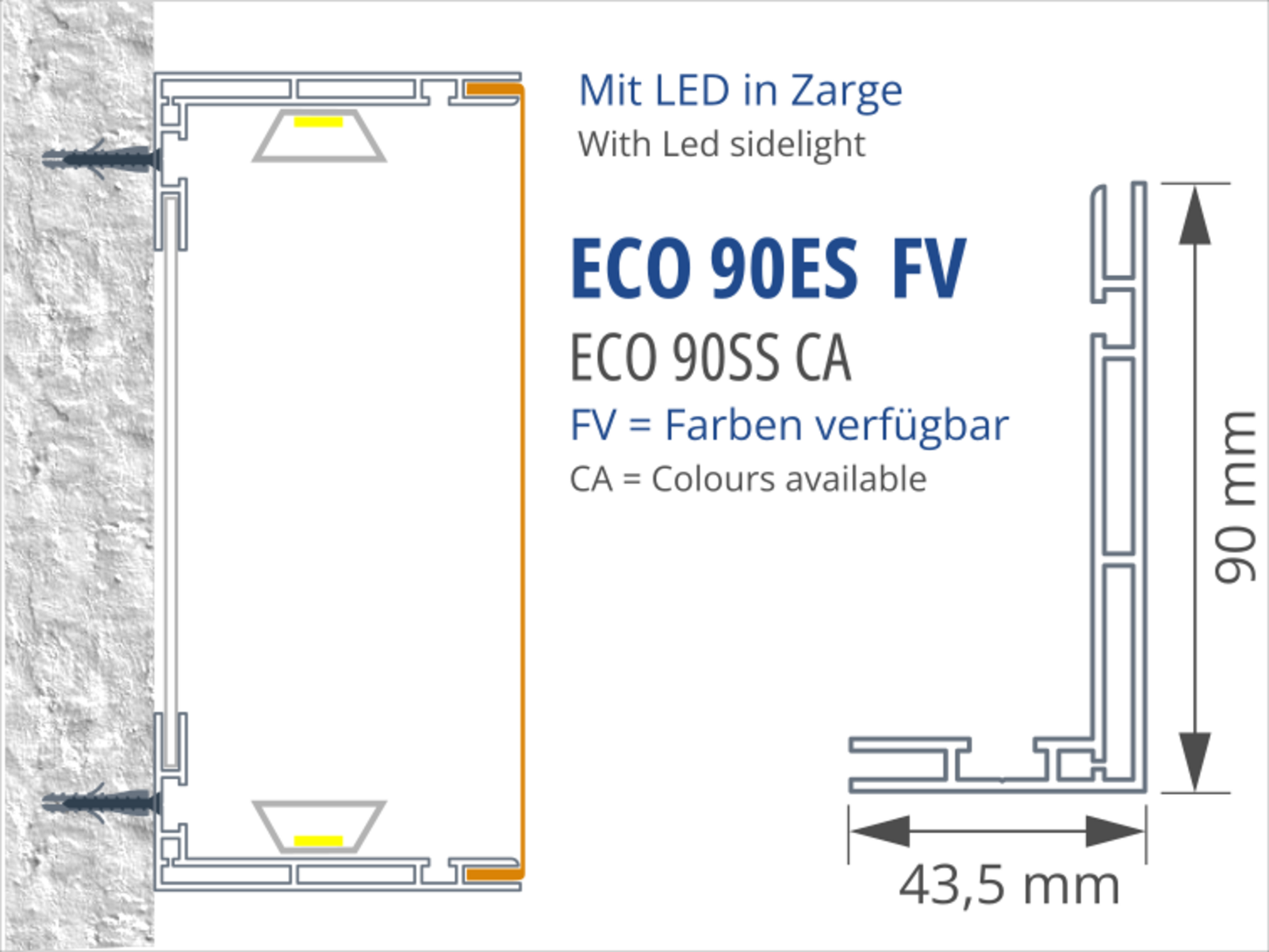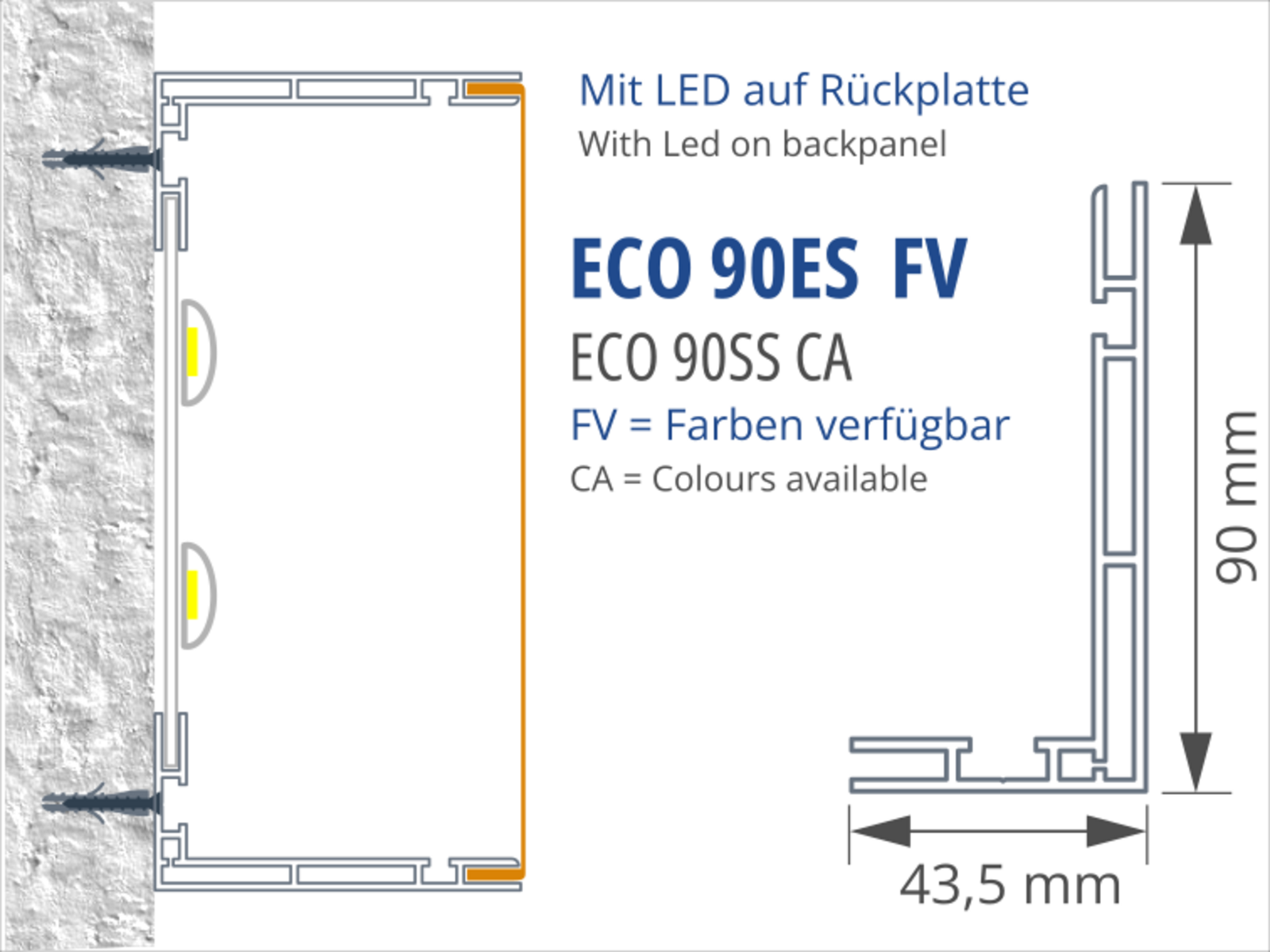 Gummilippentechnik für direkte Wandmontage oder auch mit Rückplatte für fertig vorgebaute Leuchtkästen im Innenbereich. Mit unseren 1,5W und 1,6W Zargenmodulen leuchten Sie bis zu 150cm dieser Bautiefe wirtschaftlich aus. Mit unseren 2W Ultra LED´s sogar bis zu 300cm!