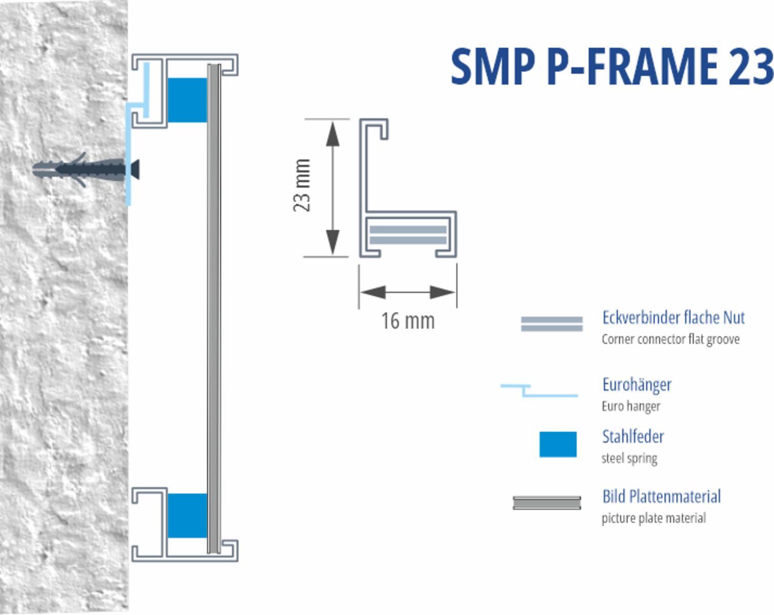 Profil zum Rahmen von Plattenmaterial. 23 mm Bautiefe. Geeignet für Platten bis 10 mm.  Auf Anfrage in nahezu jeder gängigen Farbe erhältlich. Optimales Profil für Bilderrahmen.