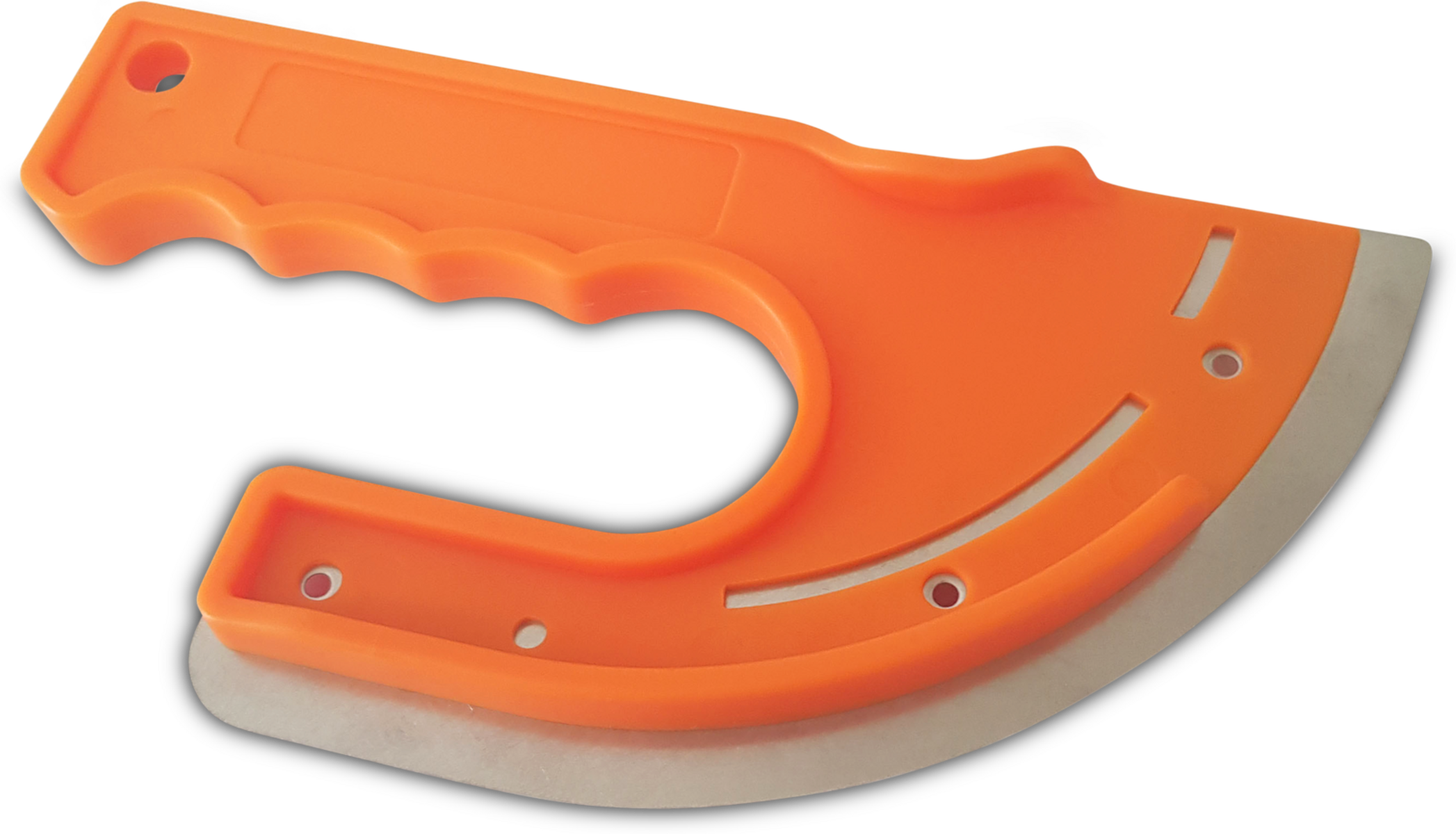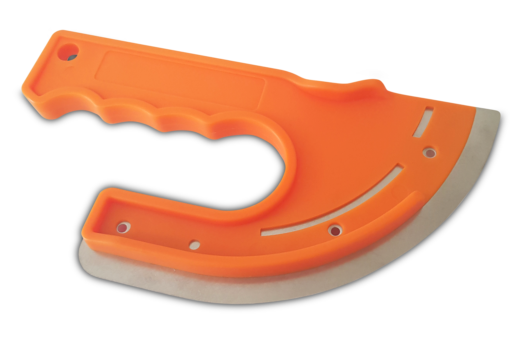 Das Metallrakel mit Kunststoffgriff erleichtert das Einsetzen von Spanntüchern – besonders dann, wenn der Stoff zum Umschlagen neigt.