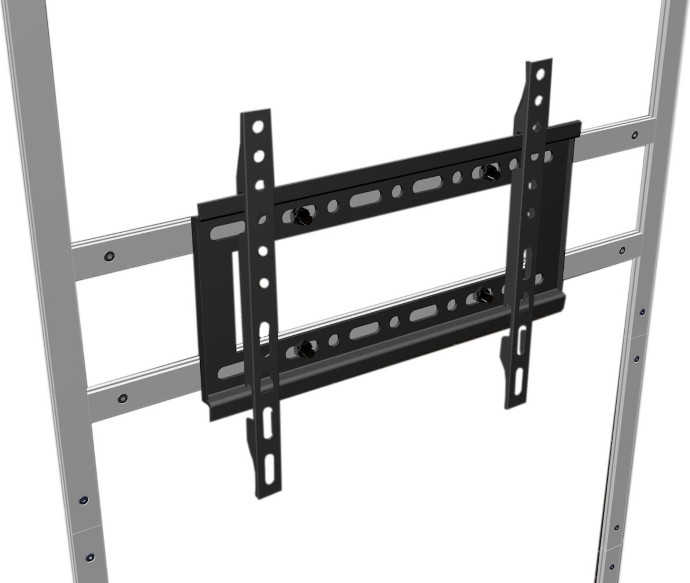 Set zur Montage von Monitoren auf die 2,5m hohen Bruno Systeme.Bestehend aus Bausatz für 2 senkrechte Streben, 2 Querstreben mit Schlössern, Montageadaptern und der Monitorhalterung mit allen Schrauben.